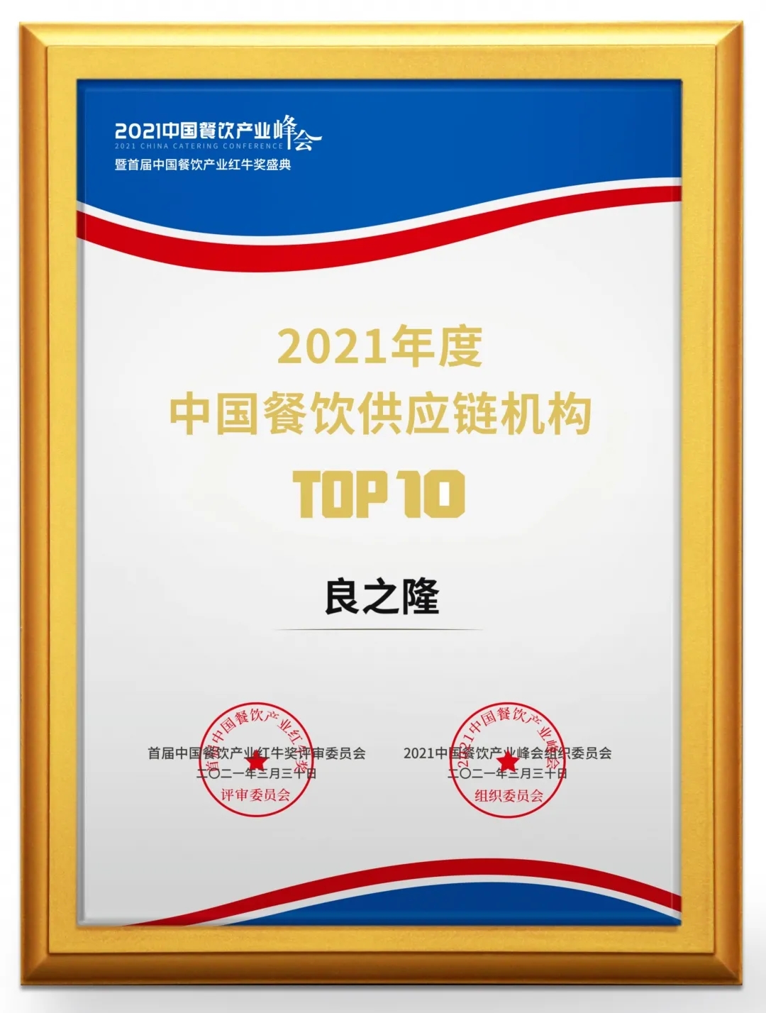 良之隆榮獲“2021年度中國餐飲供應(yīng)鏈機構(gòu)TOP10”
