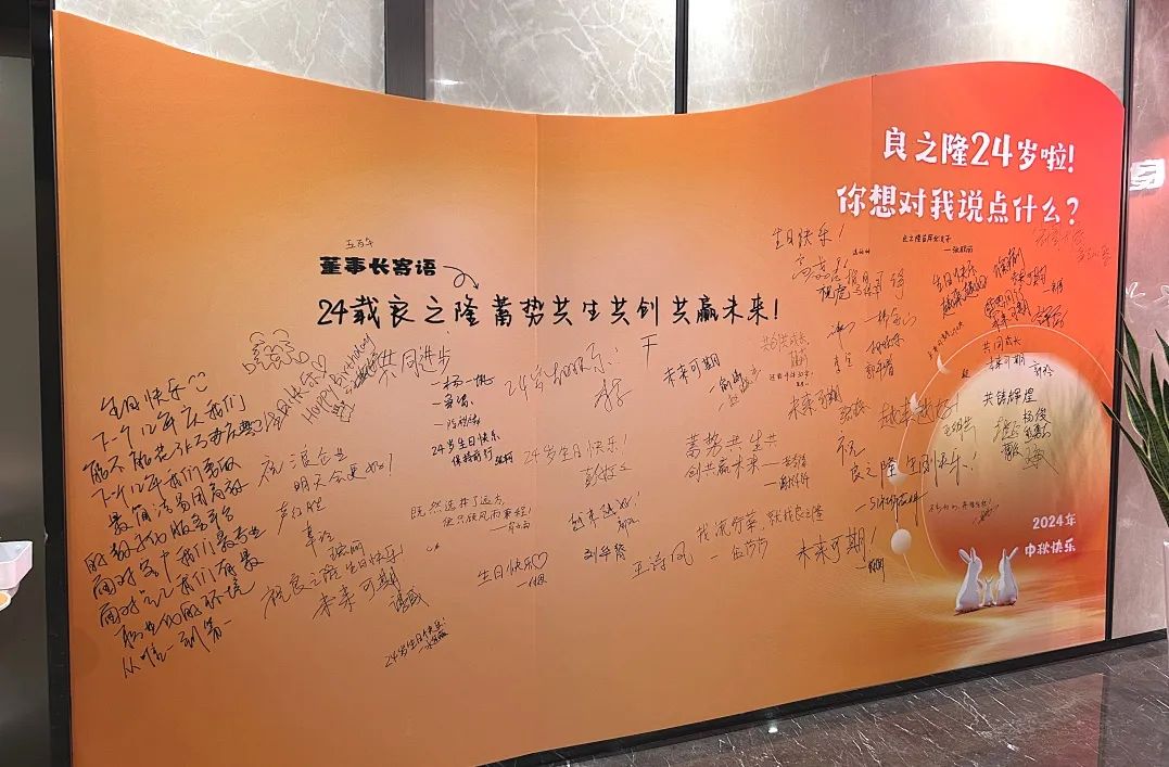 風雨二十四載,啟行創(chuàng)未來。良之隆總部組織各部門小伙伴寫生日祝語、即時攝影等形式為公司24周歲獻上祝福,財務(wù)中心、經(jīng)管中心、加盟事業(yè)部、數(shù)字化中心等部門紛紛表達對公司的感恩和對未來發(fā)展的無限憧憬!