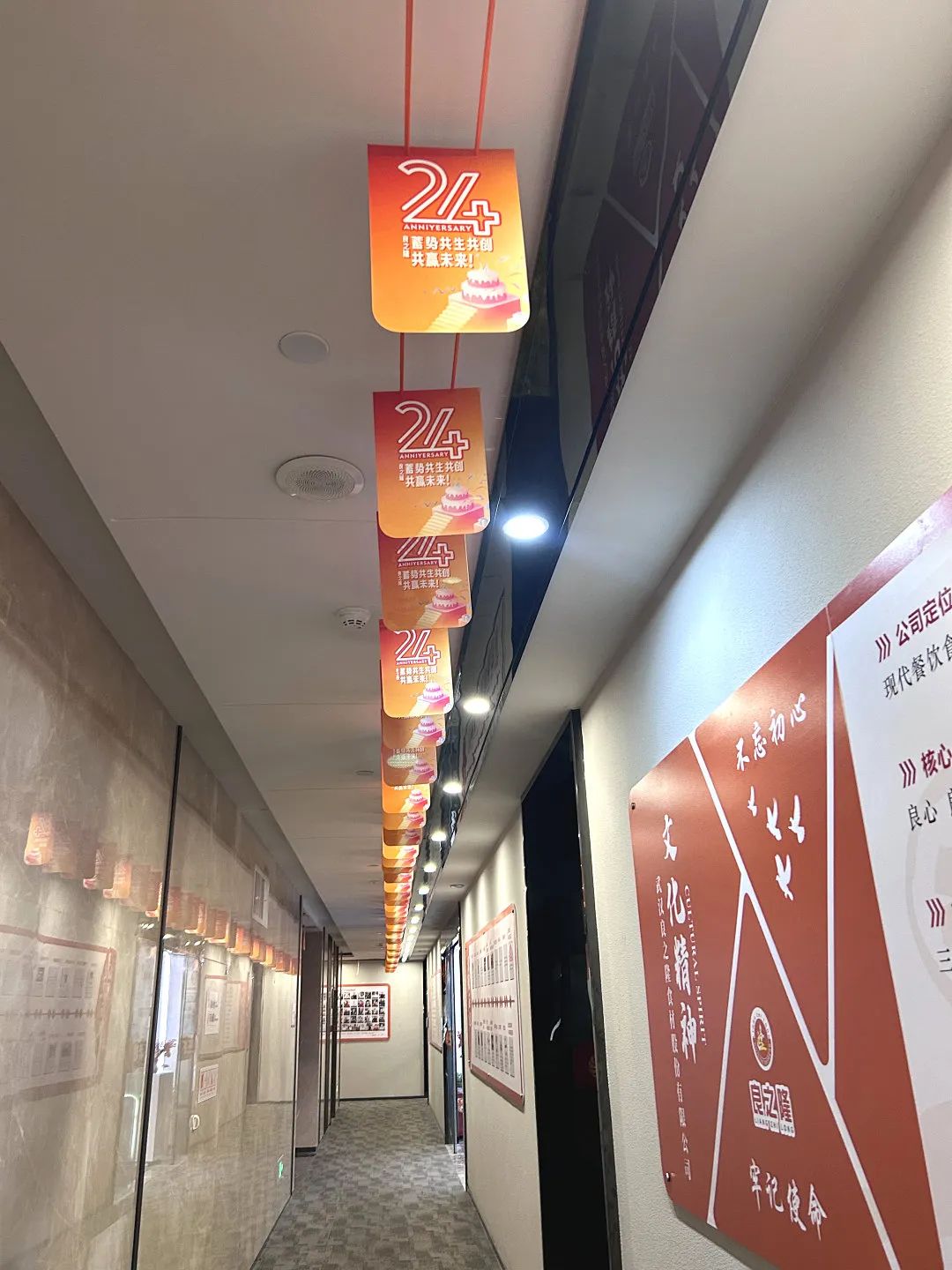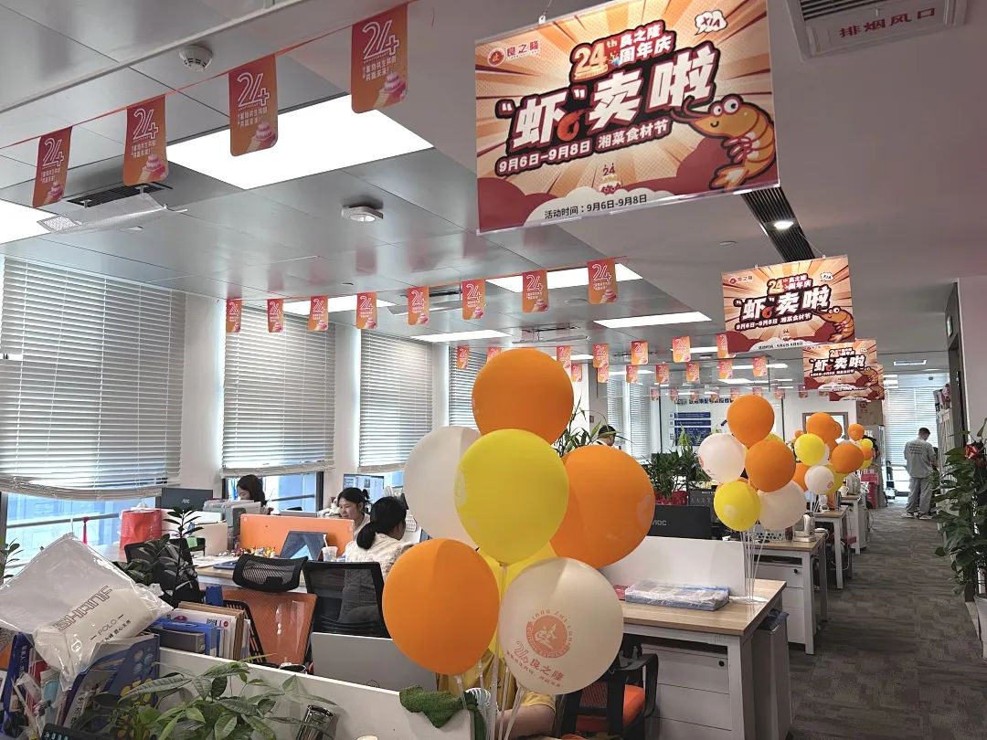公司總部及全國各門店在公共區(qū)域、辦公場所精心布置,通過在門頭、前臺、中庭、辦公區(qū)域張貼24周年活動標識、宣傳標語、吊旗等方式,全面營造隆重熱烈、喜慶活潑的慶祝氣氛。